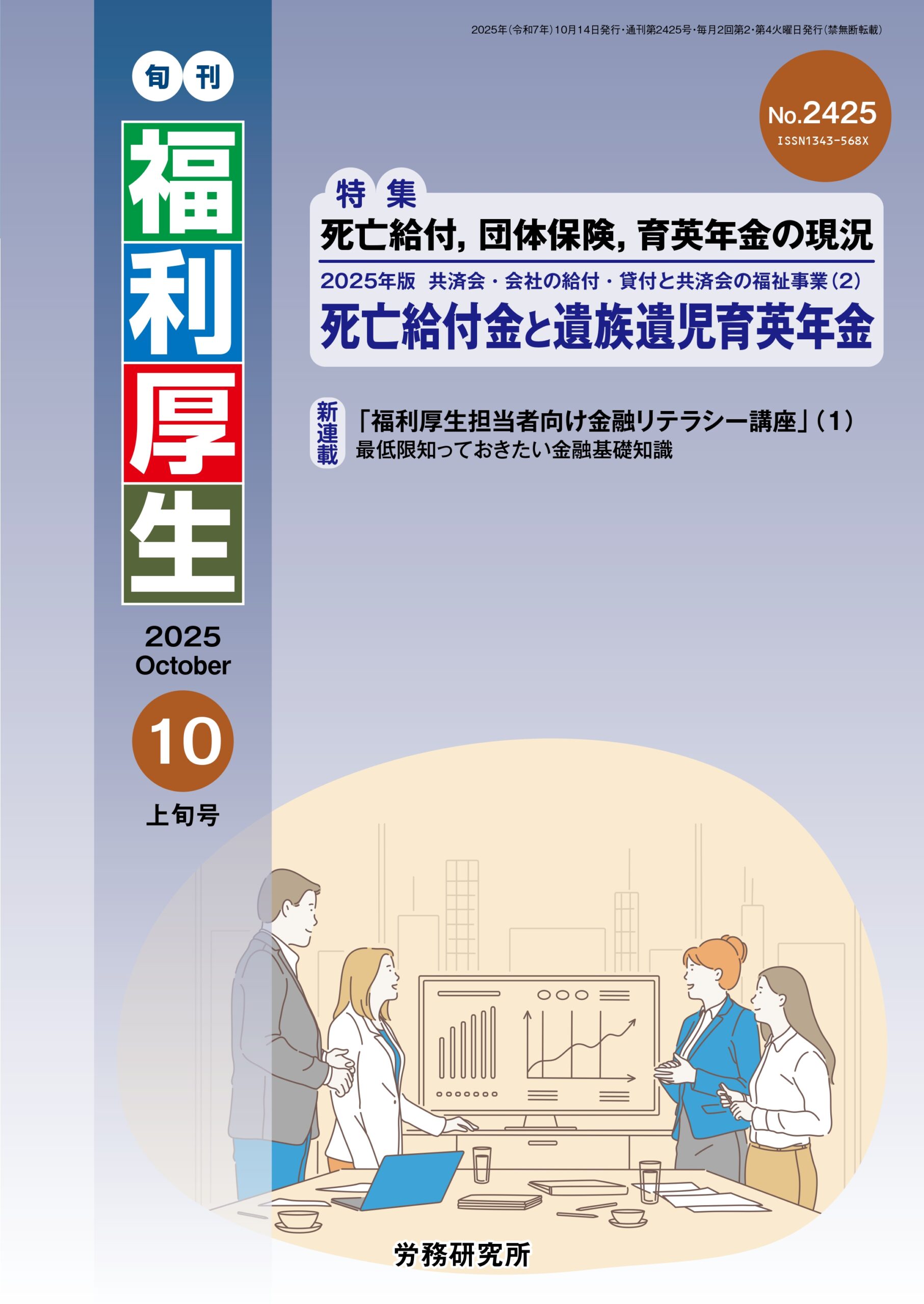 福利厚生に関する実務誌「旬刊福利厚生」を毎月2回発行いたしております。 福利厚生施策の実態調査、事例紹介、動向の解説および重要な関係情報を分かりやすく編集した実務誌です。定期調査や事例紹介記事は福利厚生施策の拡充に必ず役立つと確信しております。